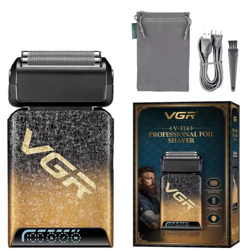 Шейвер VGR V-374 Gold зроблений у досить стандартному за розміром корпусі, при цьому він цілком забезпечує хорошу портативність і зручність при поїздах. Легка конструкція та пластиковий корпус роблять модель дуже практичною та комфортною в роботі. Зручне захоплення забезпечує легку маневреність під час гоління.