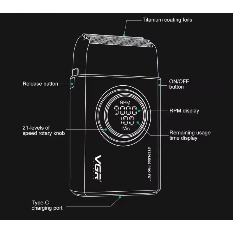 Варто відзначити, що модель оснащена професійним двигуном з 21 налаштуванням швидкості гоління. Таке рішення дозволить максимально точно підібрати необхідну інтенсивність роботи та зберегти заряд акумулятора максимально. Магазин vgr.in.ua рекомендує даний шейвер, як найбільш функціональну модель, яка легко підійде для роботи або для побутового домашнього використання.