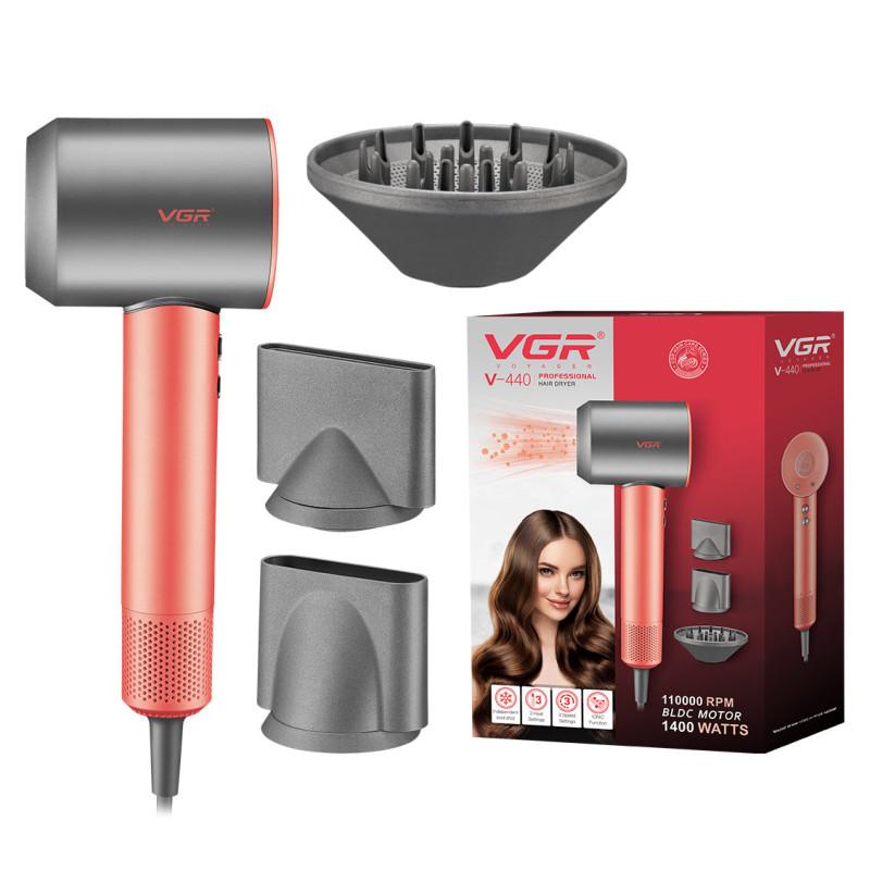 Фен V-440 оснащений мотором-турбіною нового покоління – це безщітковий мотор з цифровим керуванням (BLDC мотор), який працює на частоті 110 000 оборотів на хвилину, що уможливлює отримання повітряного потоку на дуже великій швидкості. При цьому рівень шуму складає всього 79 дБ. Потужний потік у поєднанні з тепловою потужністю 1400 Вт робить сушіння волосся ефективним, комфортним і безпечним. Магазин vgr.in.ua може рекомендувати цю модель для роботи з коротким та середнім по довжині волоссям - він буде ідеальним для вас.