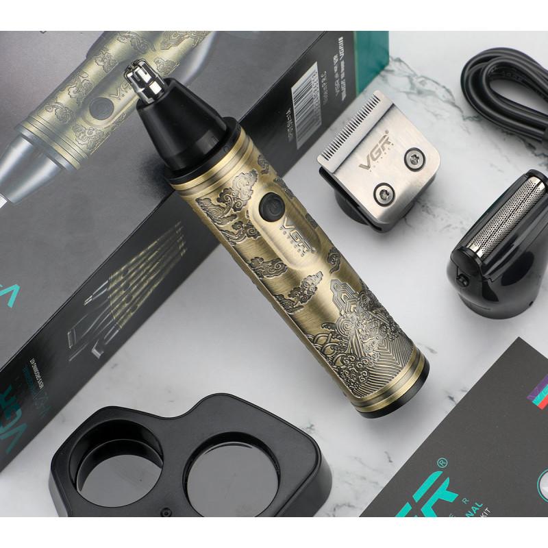 VGR V-621 – відмінний бездротовий триммер для носа 4 в 1. Компактна модель з гарними можливостями та відмінною комплектацією, яка включає насадку для видалення волосся в носі та вухах, насадку-триммер, насадку-шейвер і насадку для стрижки волосся. Такий аксесуар ніколи не буде зайвим, як удома, так і в різних мандрівках або відрядженнях. Універсальна модель, яка чудово підійде як чоловікам, так і жінкам.