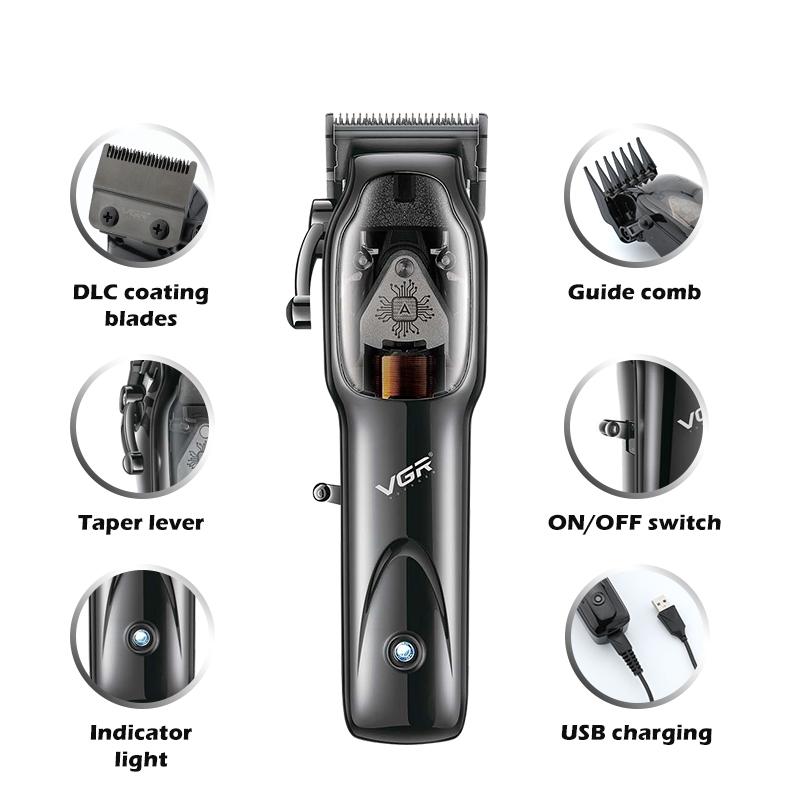 Машинка для стрижки VGR V-653 створена для перукарів і стилістів, яким необхідний максимально продуктивний інструмент для стрижки будь-якого волосся, хоч дроту. Модель оснащена сучасними функціями та технологіями для комфортної та легкої стрижки волосся. Оригінальний продуманий дизайн та гарна комплектація роблять машинку цікавою для будь-якого стиліста.